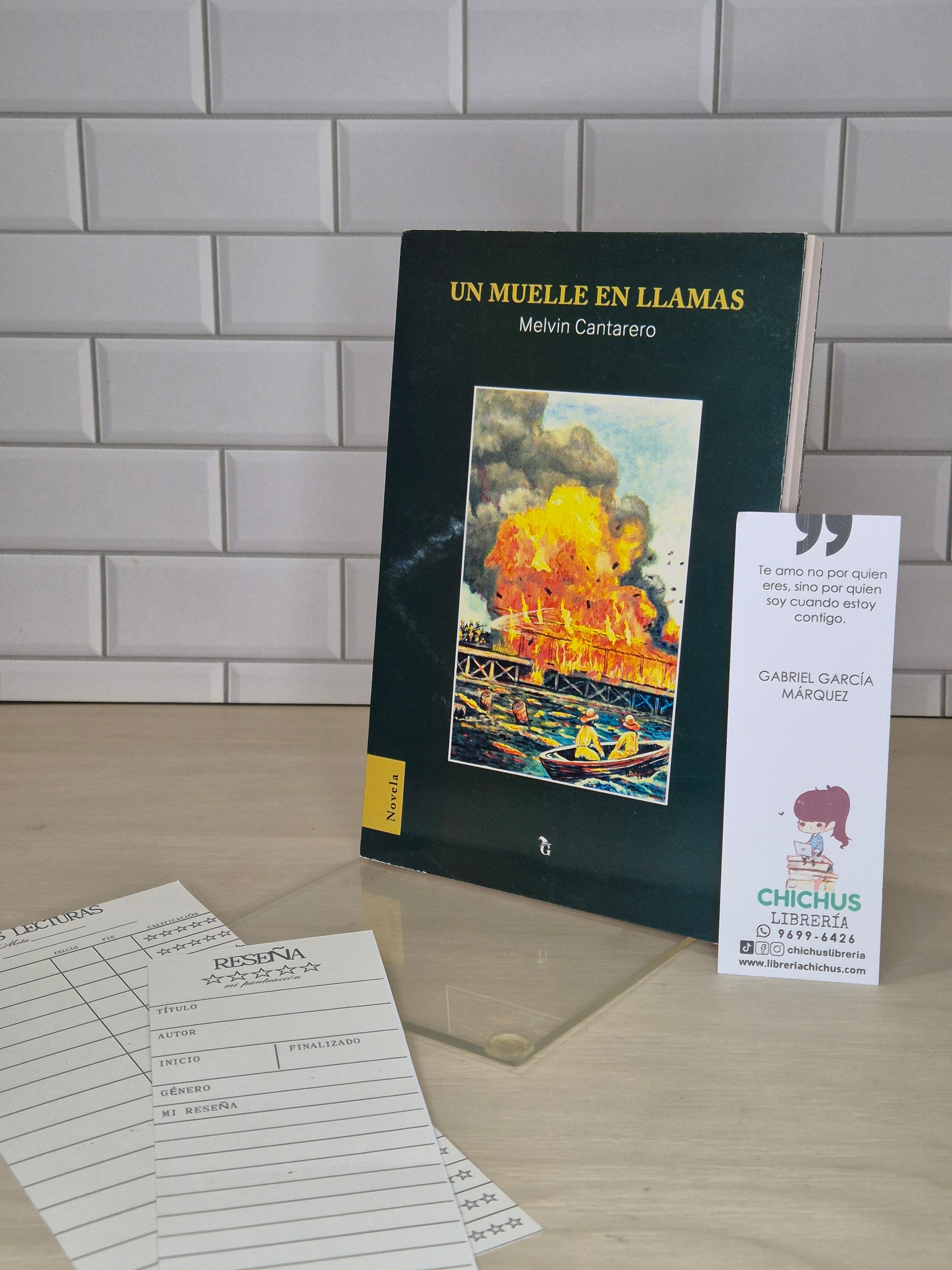 Un muelle en llamas, es una obra regionalista que recoge las añoranzas del teleño de final del siglo XX, sobre el pasado de su pueblo, ligado a la TRRC. El autor, a través de una indagación exhaustiva, recoge una serie de remembranzas, cada una de las cuales convergen en el incendio del muelle, en un estilo de mosaico identitario del pasado y presente: La migración, la cultura y la educación.
